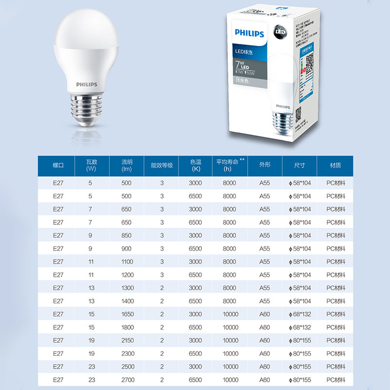 Philips led household energy-saving light bulbs super bright lighting e27 screw mouth household super bright high-power light source light bulbs