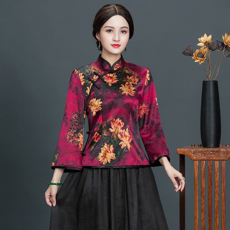 Chinese classic true silk qipao blouse with female long sleeves 2021 new Chinese style retro handmade disc buckle mulberry silk Tang dress