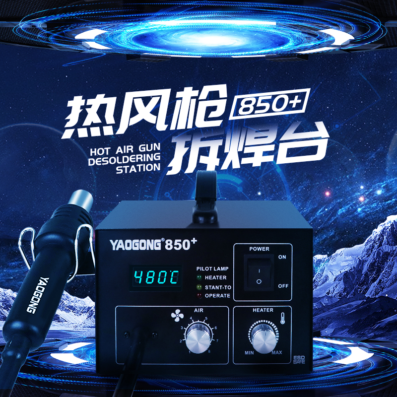 Yaogong 850 digital display hot air gun desoldering station mobile phone electronic repair small welding station 600w constant temperature adjustable temperature