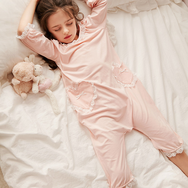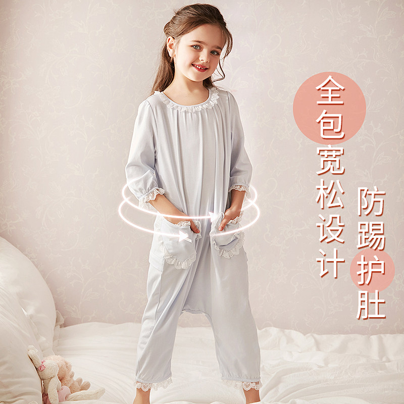 Rosetree children's one-piece pajamas summer thin section princess girls baby air conditioning clothing girls anti-kick home clothing