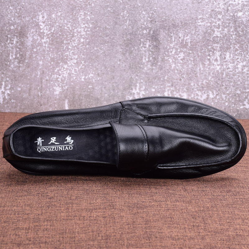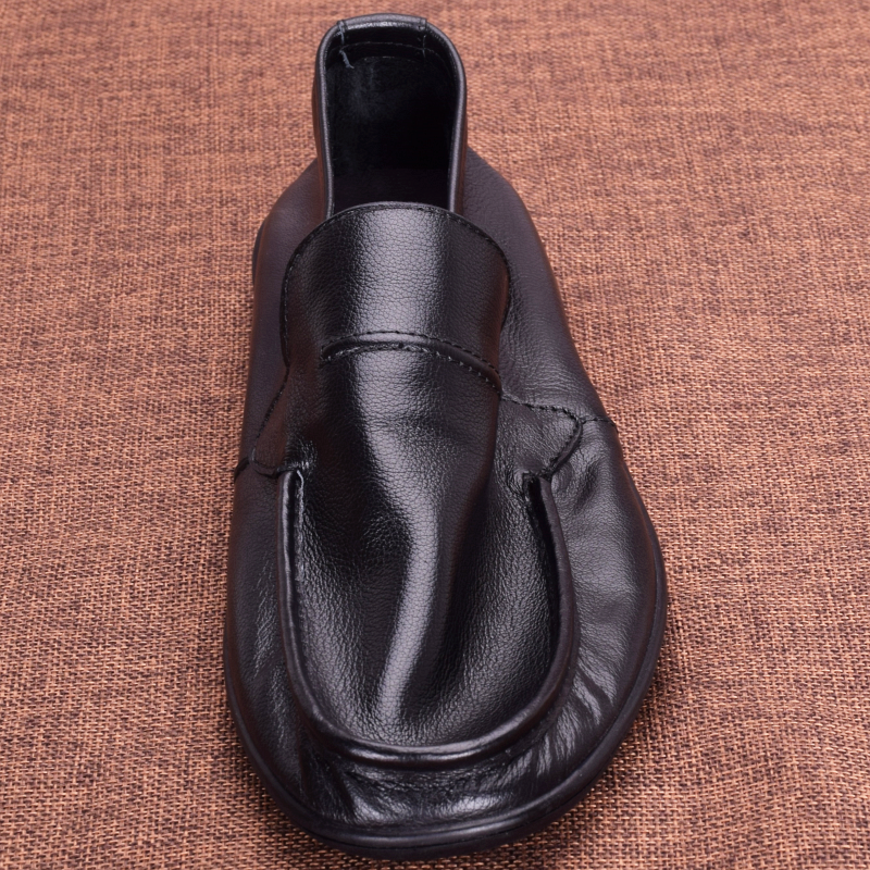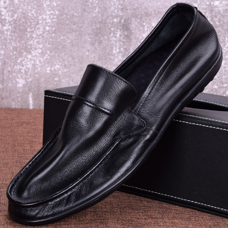 Foreign trade spring genuine leather men's slip-on shoes soft bottom beanie toe layer leather lightweight slip-on shoes driving shoes men