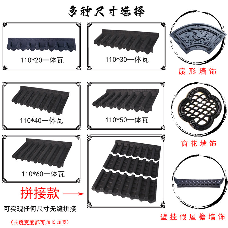 Antique tile resin tile integrated Chinese eaves decorative plastic splicing door head ancient building lengthening widening tile roof