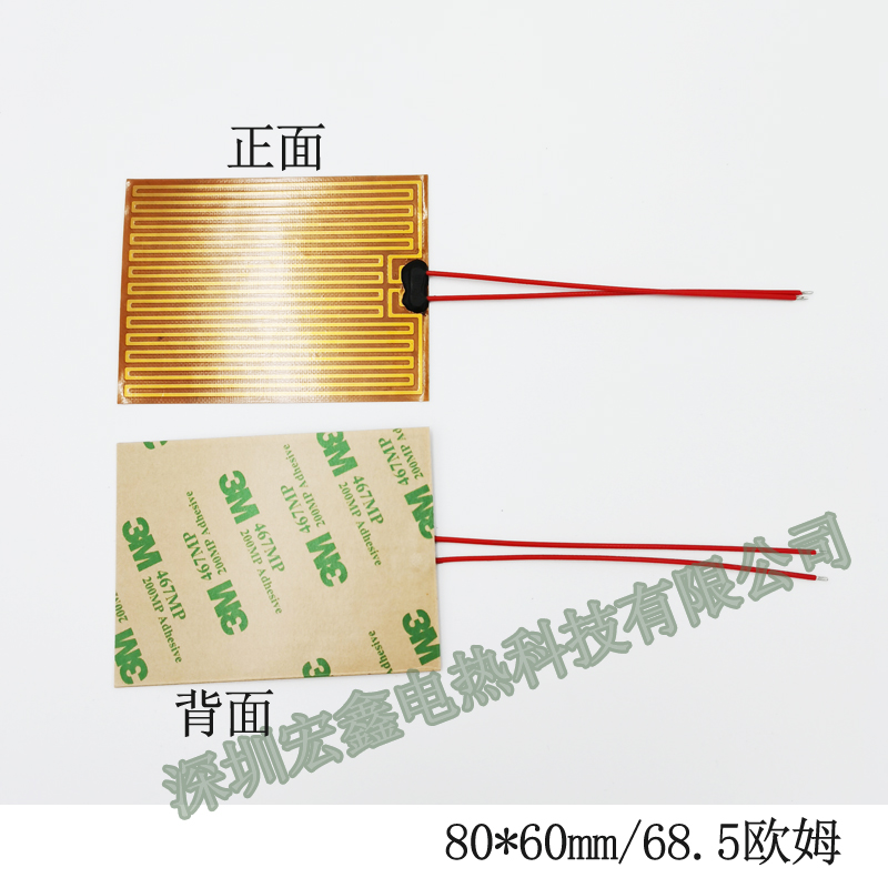 Shenzhen Hongxin 80 * 60PI electric heat sheet 68 5 Ohm heating sheet insulation heating film polyimide fever film