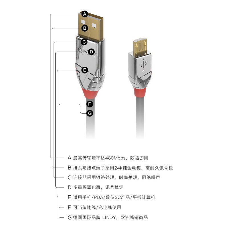Germany LINDY Cromo series Android data cable mobile phone usb high charging cable Xiaomi Huawei Meizu vivo