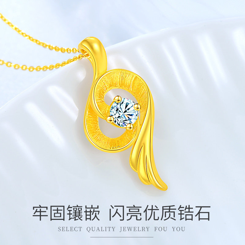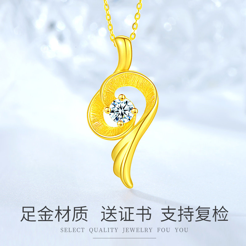 999 Gold Necklace Female 24K Pure Gold Pendant New Clavicle Chain Short Pure Gold Birthday Gift for Girlfriend