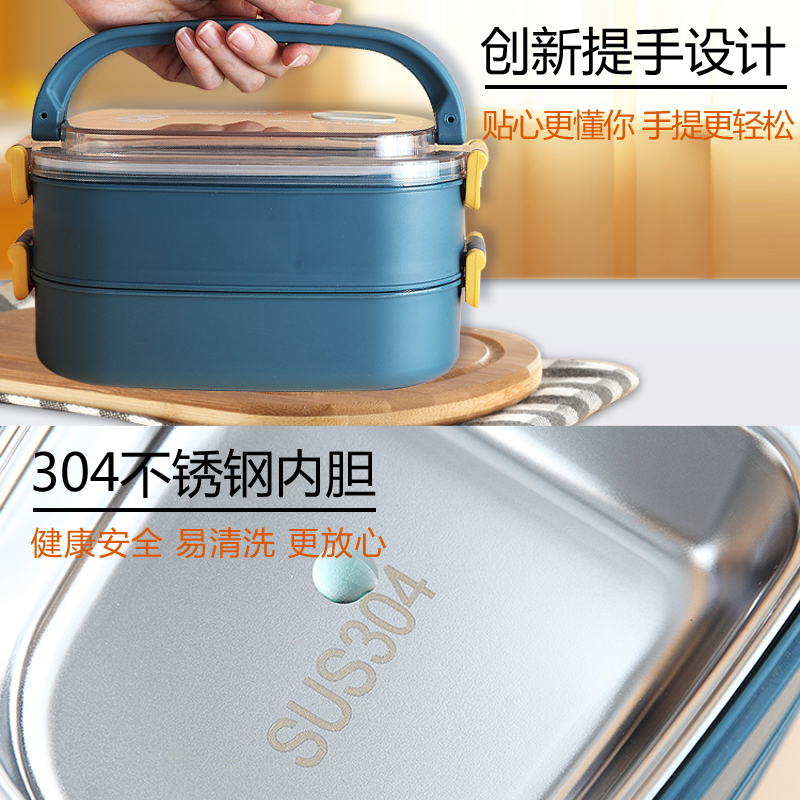 German 304 stainless steel students boxed boxes divided into multiple layers of work, lunchbox cutlery box Microwave non-insulated