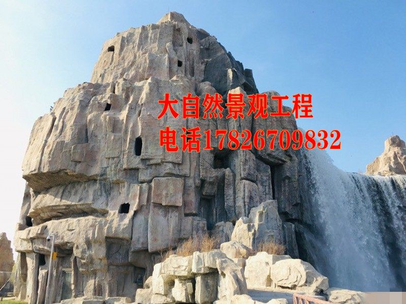 Large cement rockery large waterfall flowing water scenic spot outdoor gate homestay tourist scenic spot simulated stone façade