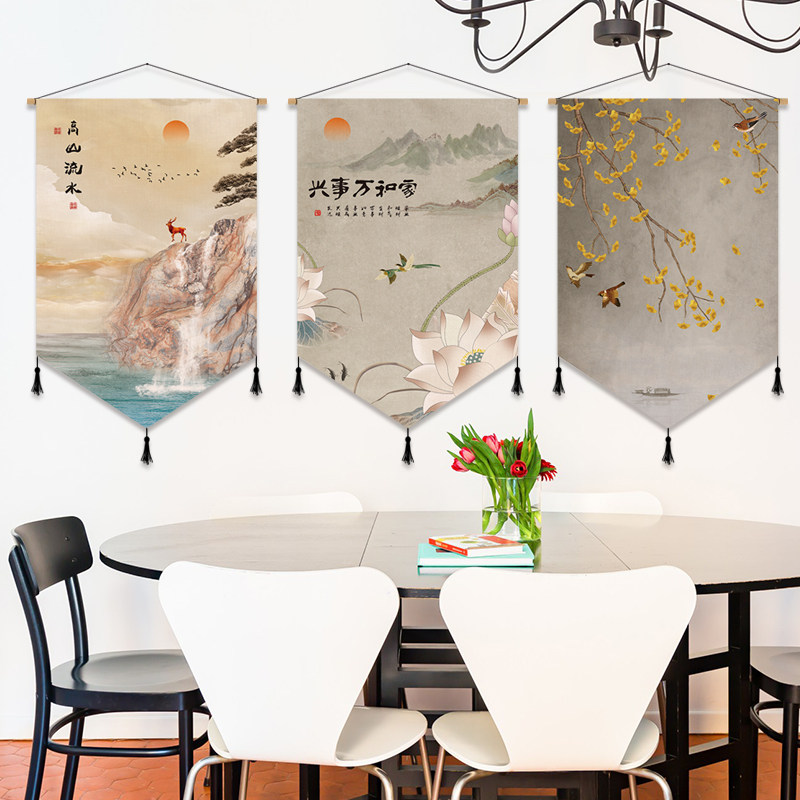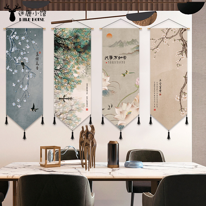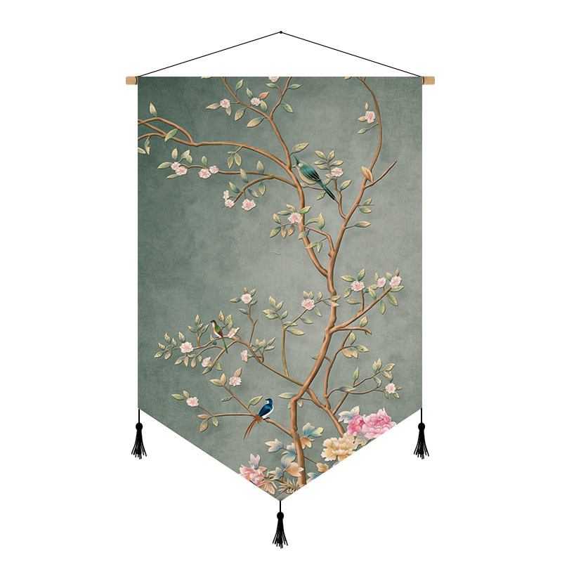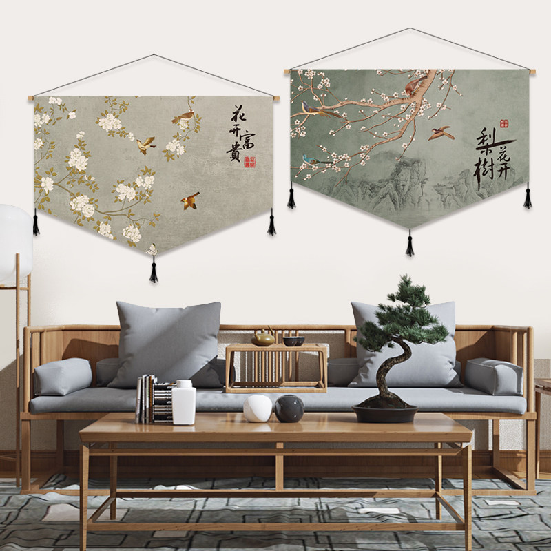 Flower rich fabric hanging painting Modern Chinese living room background wall decorative painting Dining room tapestry Bed and breakfast transformation hanging cloth
