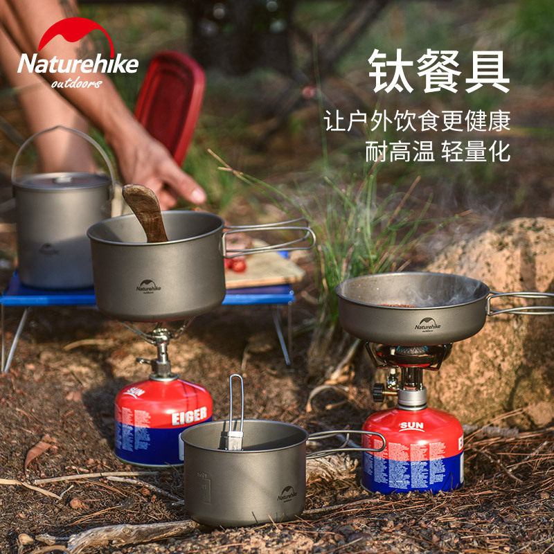 NH Norwegian Portable Outdoor Folding Handle Titanium Pan Tableware Frying Pan Light Cutlery Camping Picnic Light 2-3 People Pot