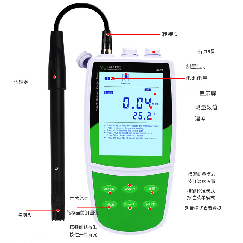 Portable dissolved oxygen 0 2 portable dissolved oxygen 0 5 portable dissolved oxygen detector common electrode fluorescent electrode electrolyte membrane head fluorescent electrolyte membrane head