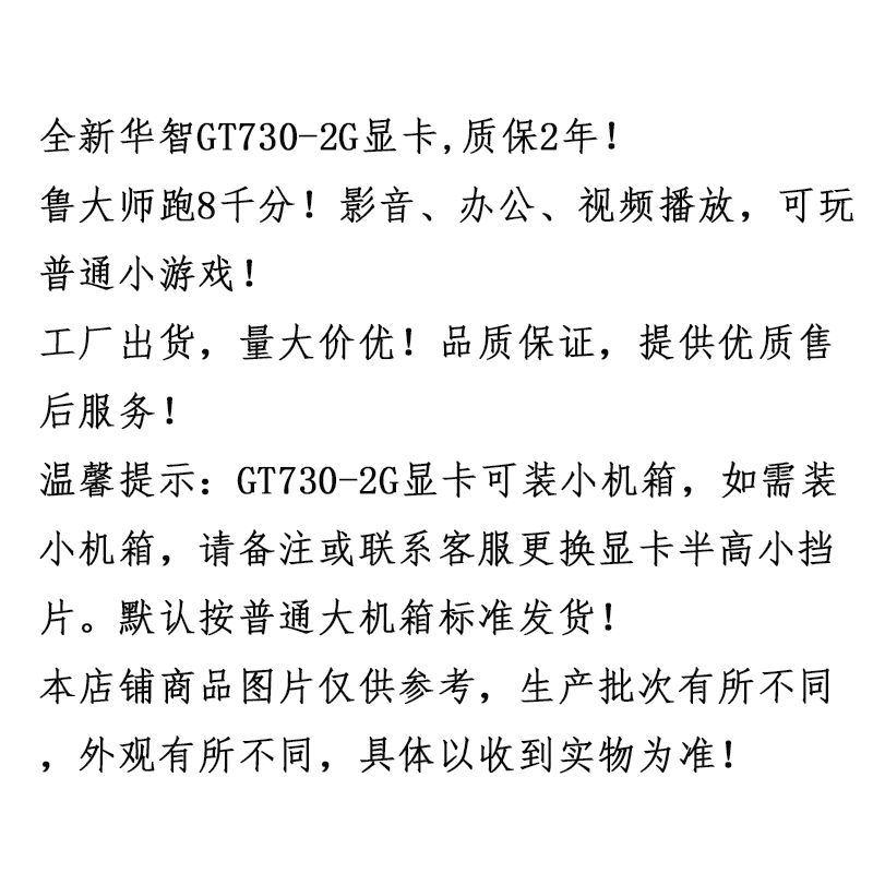 Brand new wazhi GT710 GT730 2G DDR3 independent game Small host shell double display graphics card warranty 2 years