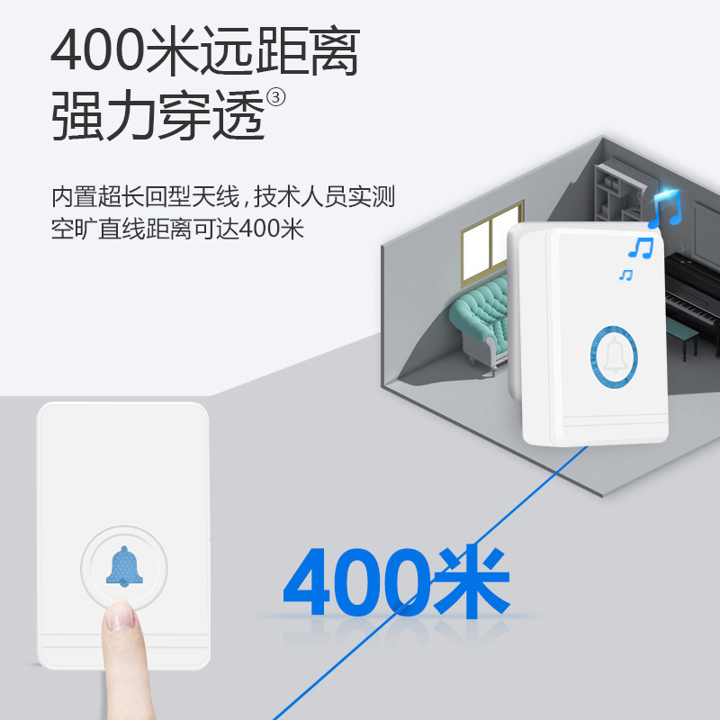 Wireless doorbell Home ultra-long distance through the wall 80 meters waterproof outdoor doorbell one drag one drag two old people call