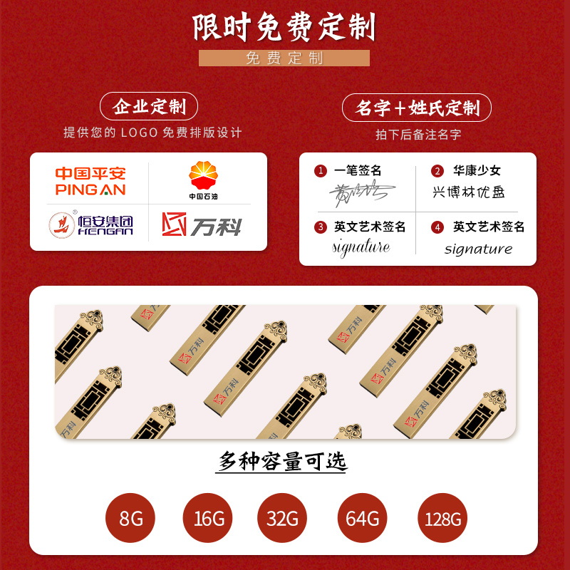 Tianbao Niu Antique Carrying Disk 32g Genuine High Speed USB Carrying Disk China Style Xuanyun Creative Personalized Upan Engraved Logo Custom Gift Box Wholesale Car Computer Dual-use USB Disk