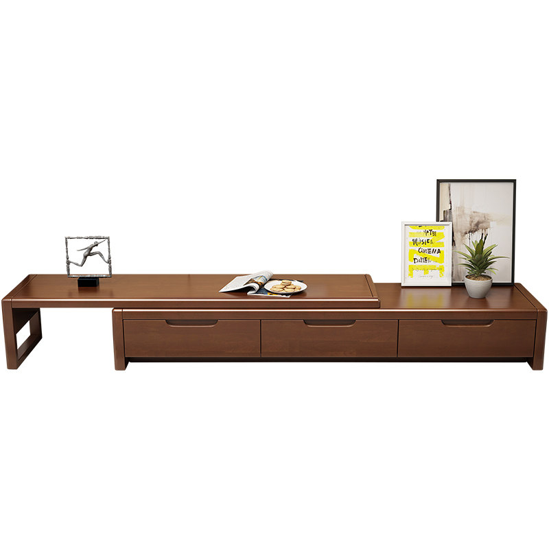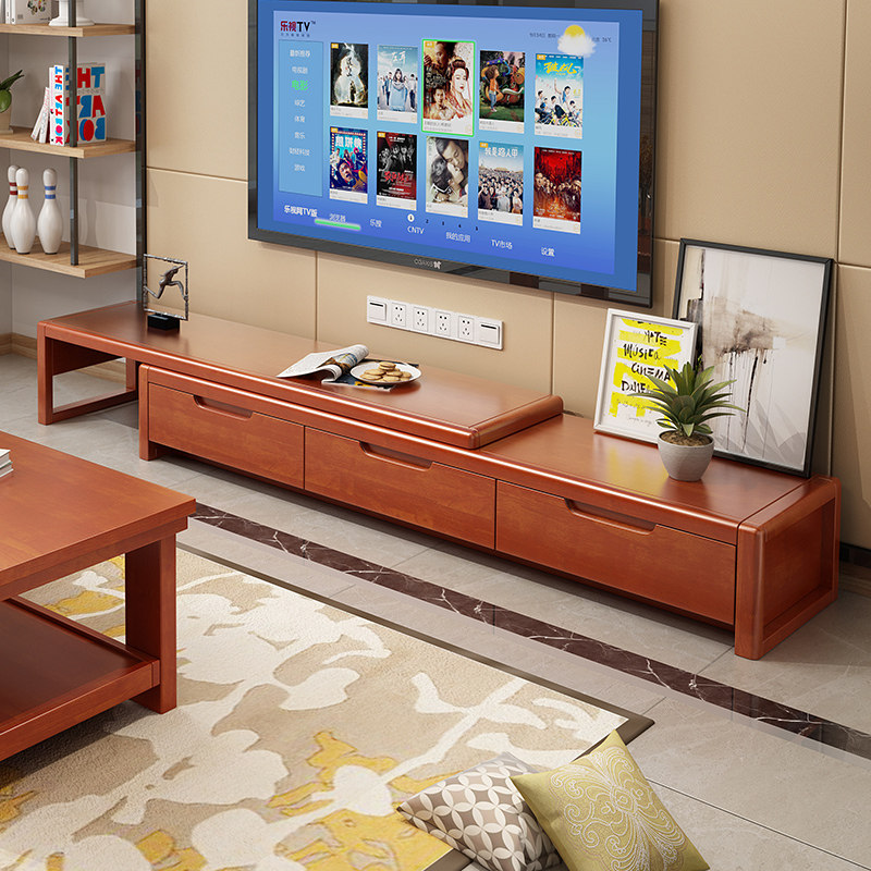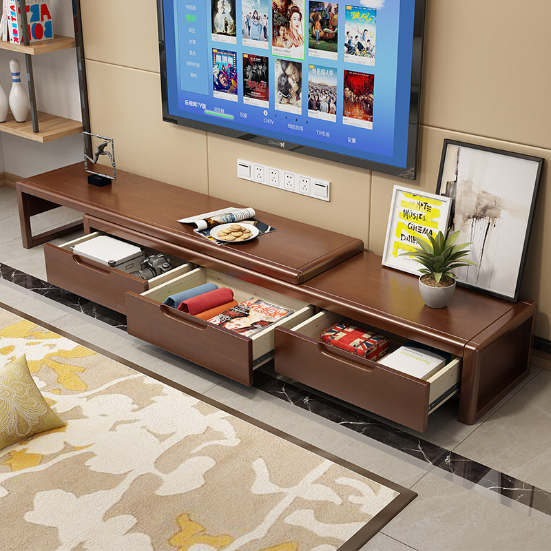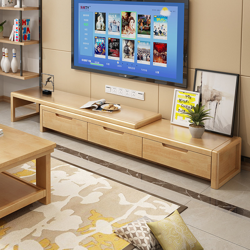 Solid wood TV cabinet coffee table combination modern minimalist living room small apartment home mini space-saving telescopic floor cabinet