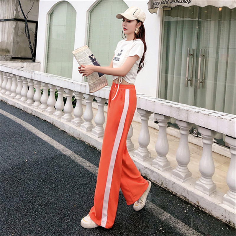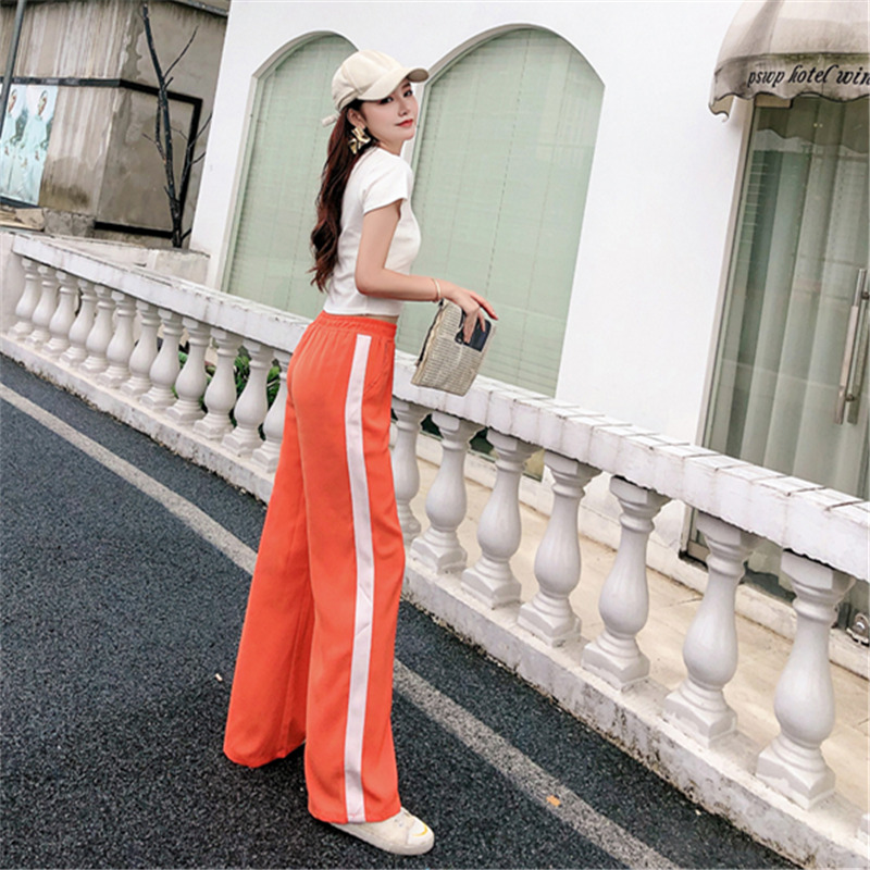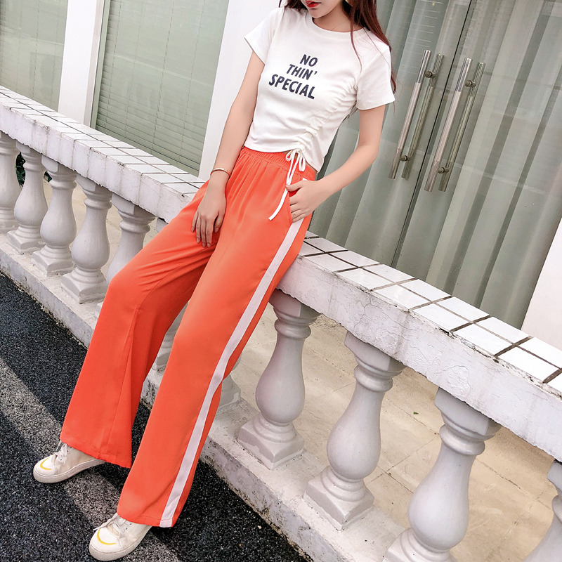 Summer 2020 New ladies Loose Casual Wide Pants Suit Foreign Pie T-shirts Less Slim Two Sets