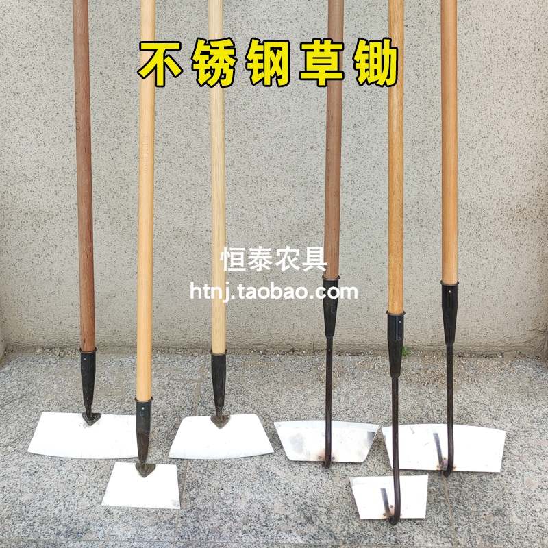 Small stainless steel shovel hoe Medium stainless steel shovel hoe Large stainless steel shovel hoe Small stainless steel rake hoe Medium stainless steel rake hoe Large stainless steel rake hoe Small blade rake