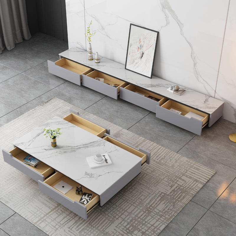 Sofa marble rock board tea table TV cabinet combination Italian gray luxury simple living room furniture set
