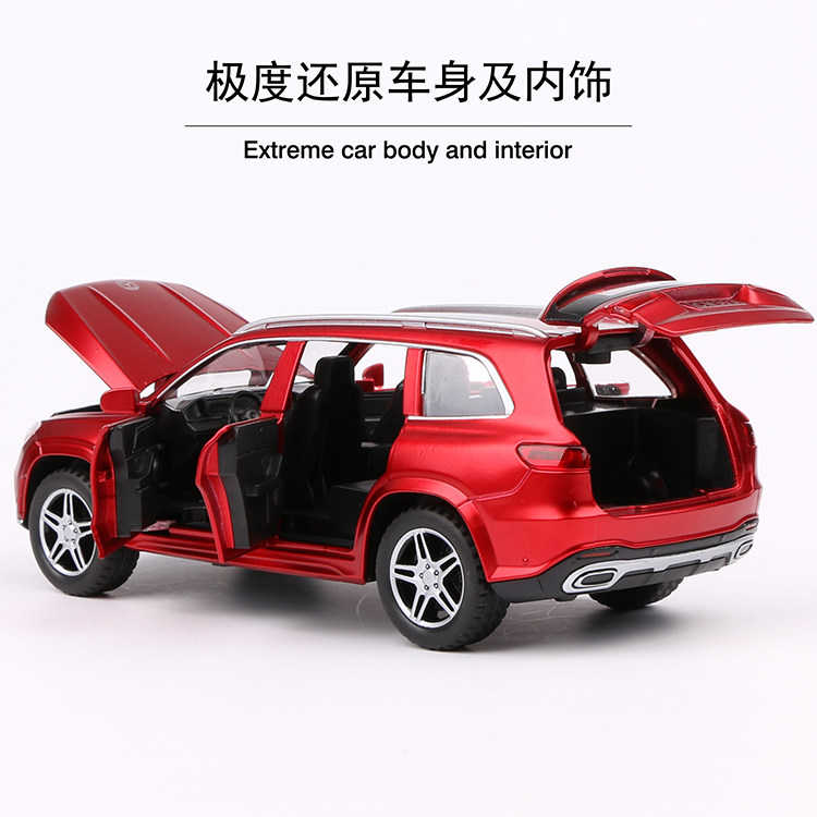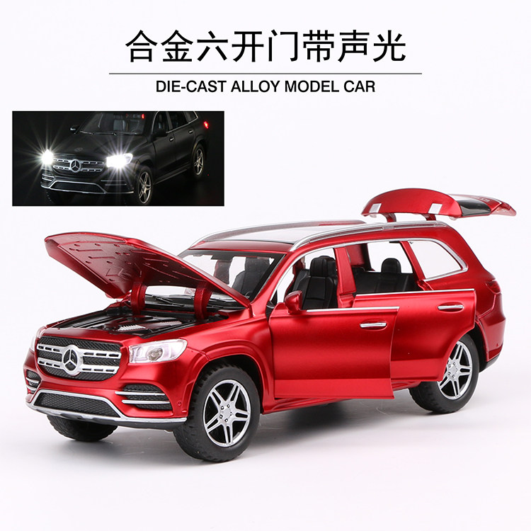 Mercedes GLS580 alloy car model sound and light pull back to open the door boy toy car simulation car model 4S shop giveaway