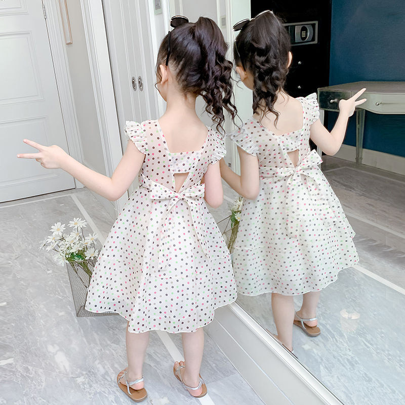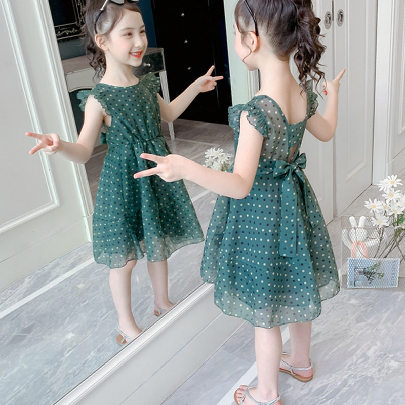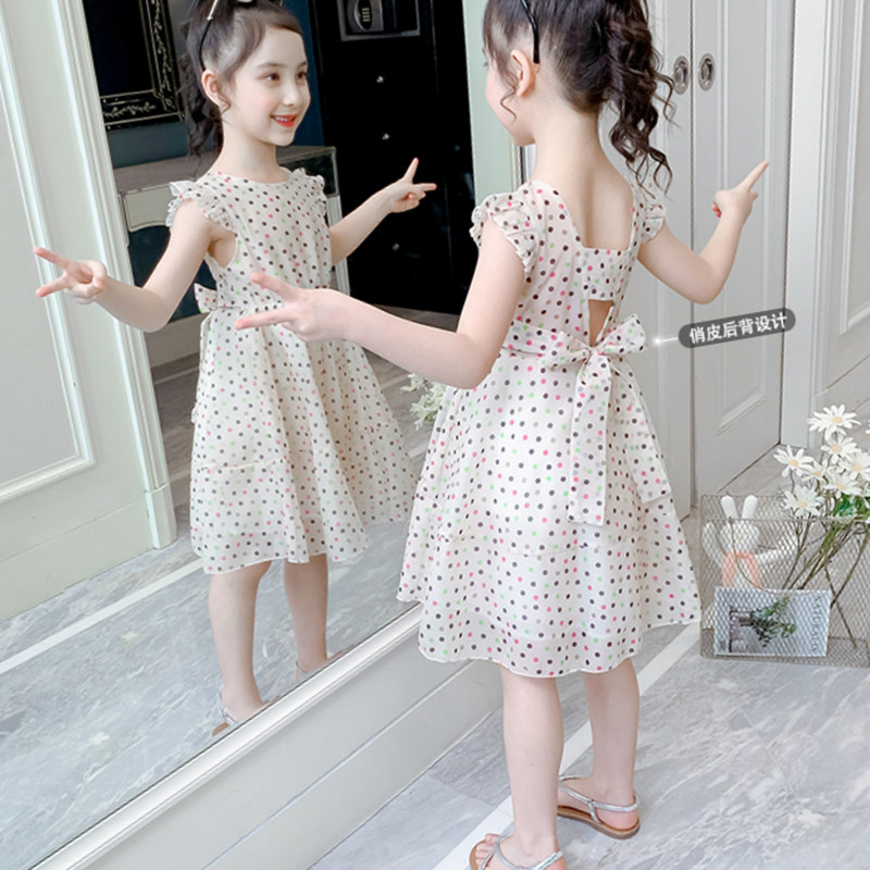 Korean girls' dresses and summer dresses 2022 new western style little girls' backless children's clothes summer middle-aged children's princess dresses