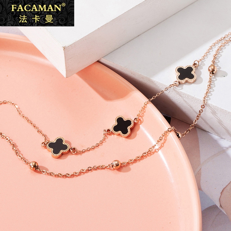 Fakaman Double Layer Four Leaf Grass Foot Chain Woman Personality Han Edition Women's Sexy Rose Gold Titanium Steel Small Crowdsourced Design Foot chain