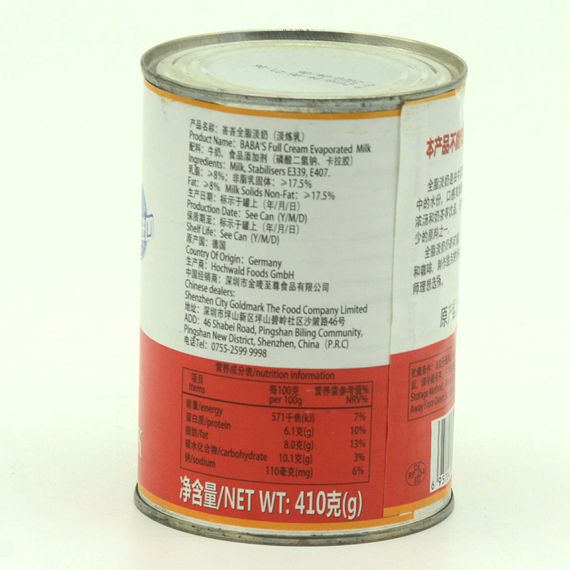 Baba - fat milk 410g dessert dairy tableware baking meal baking tea full 6 cans