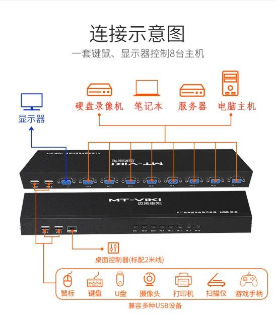 Maxtor Moment MT-801UK-L kvm Switch 8 Port USB HD VGA Monitor Mouse and Keyboard Cut Screen Sharer 8 In 1 Out Rack Type DVR Inline