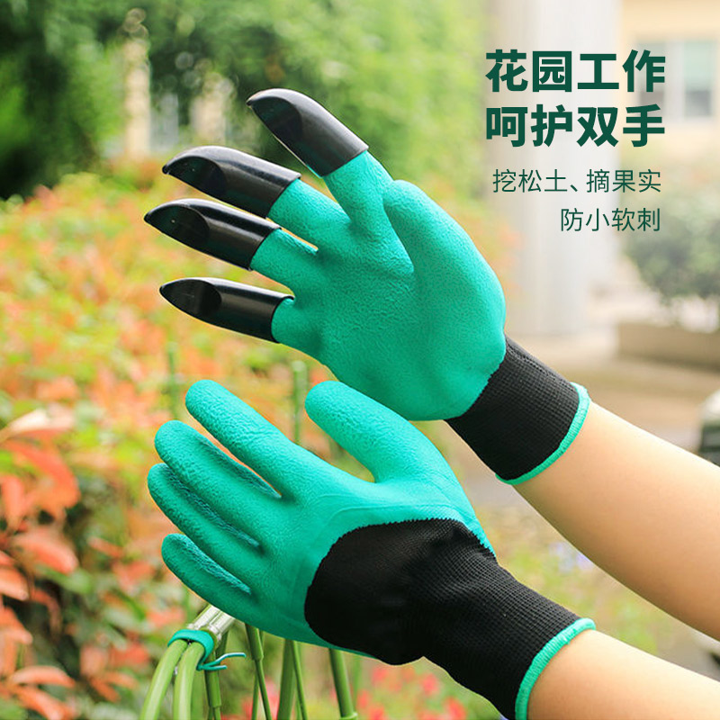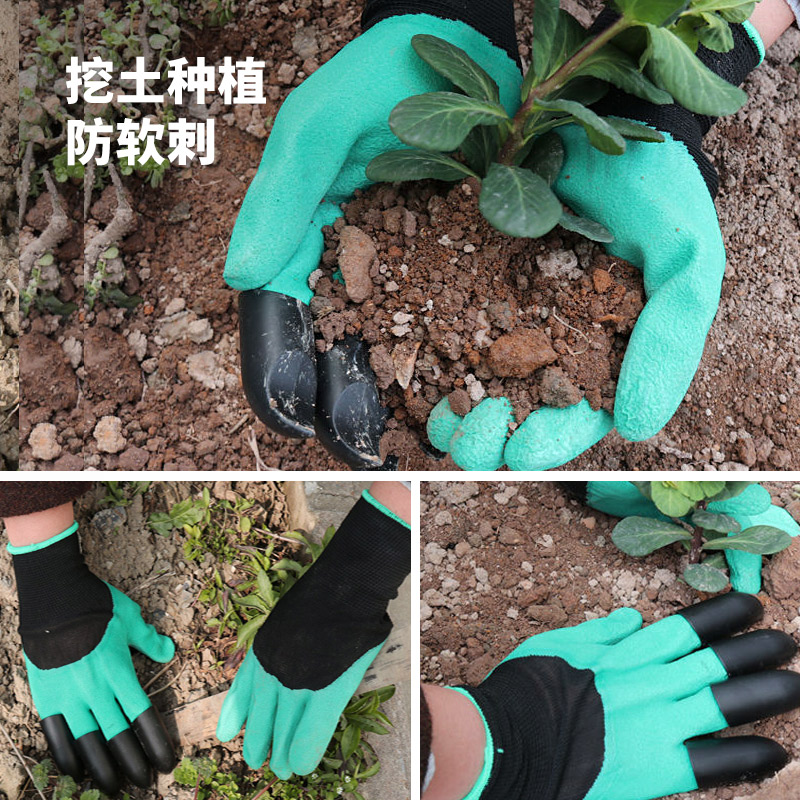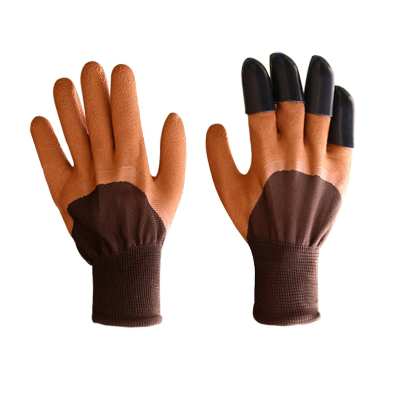 Gardening protective breathable gloves with claw gloves - coffee orange black color matching Gardening wear-resistant gloves - gray yarn blue wrinkles Gardening wear-resistant gloves - yellow yarn red wrinkles