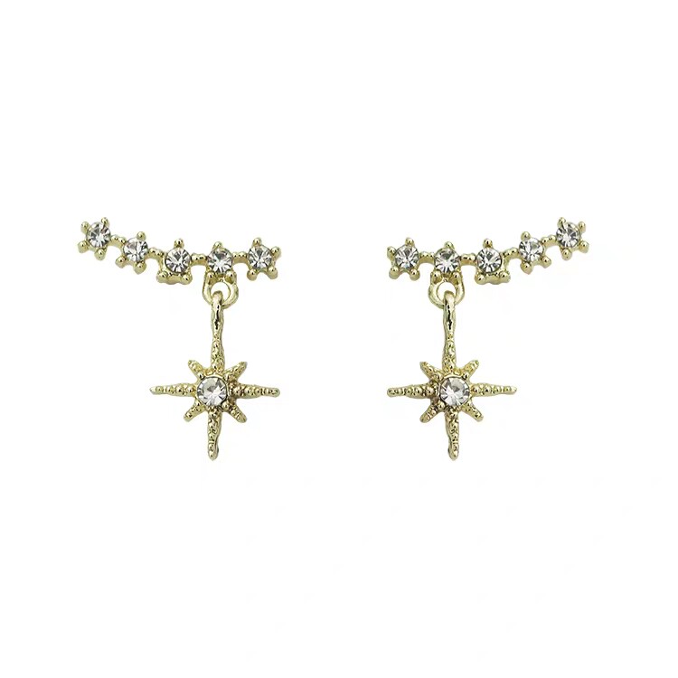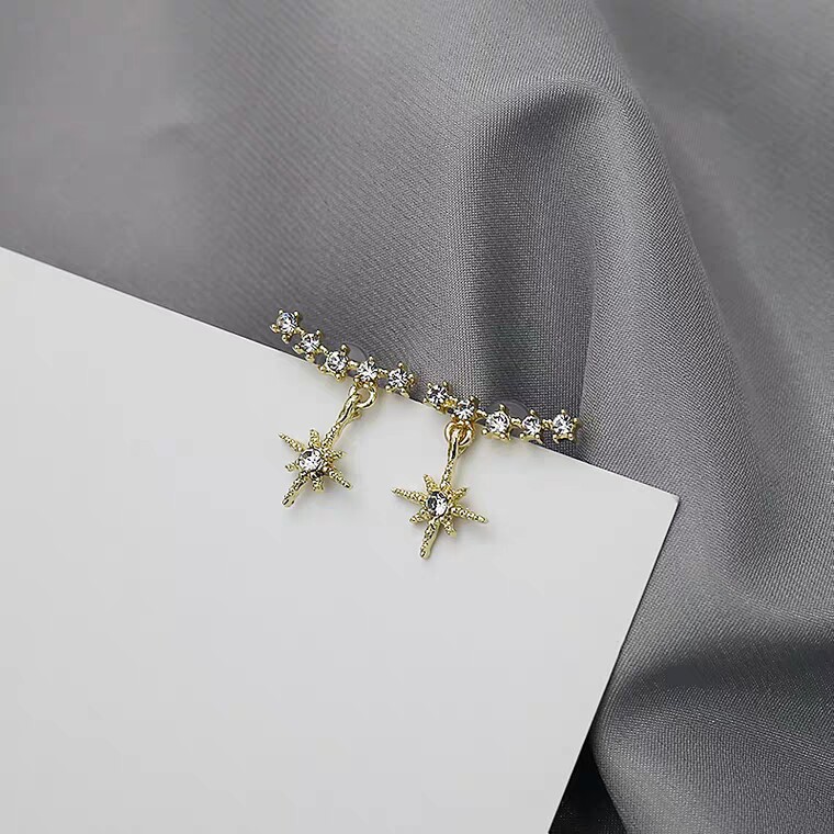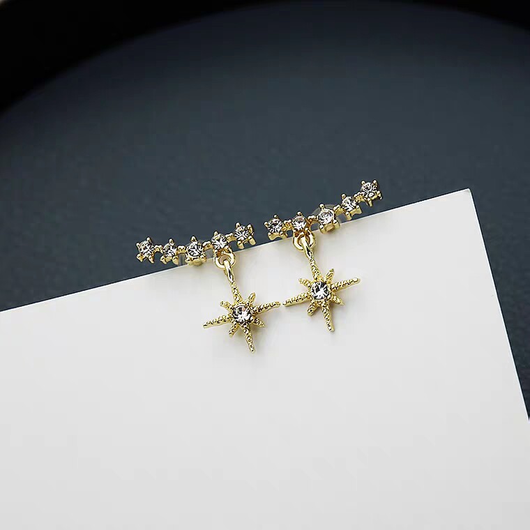 s925 silver Japanese and Korean small fresh eight-pointed star zircon short ear acupuncture female design sense net red fashion all-match temperament
