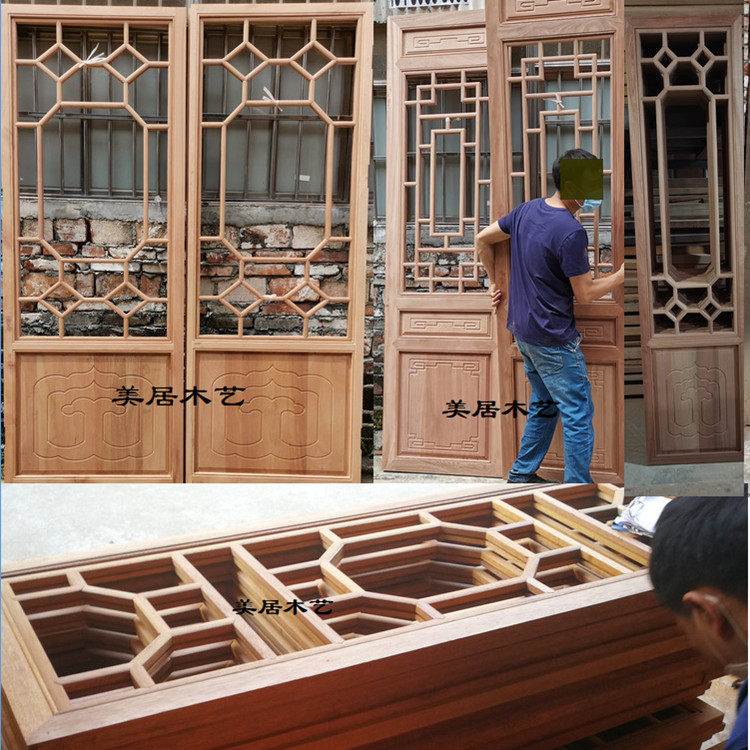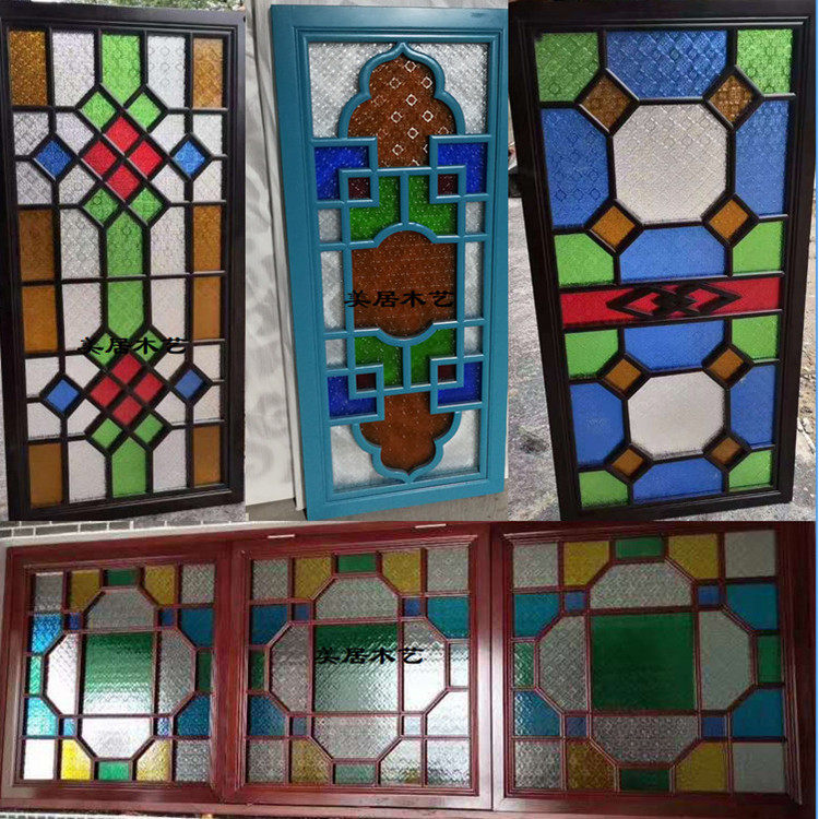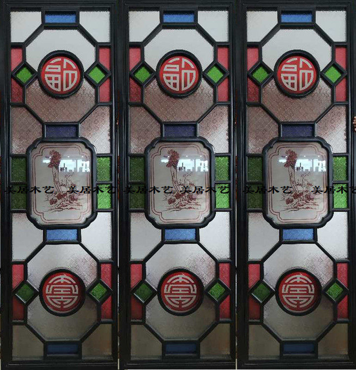 Western Guan Lingnan Full Chau Window Colored Embossing Sea Tang Glass Old Street Renovation Solid Wood Carved and Antique Doors And Windows Screen