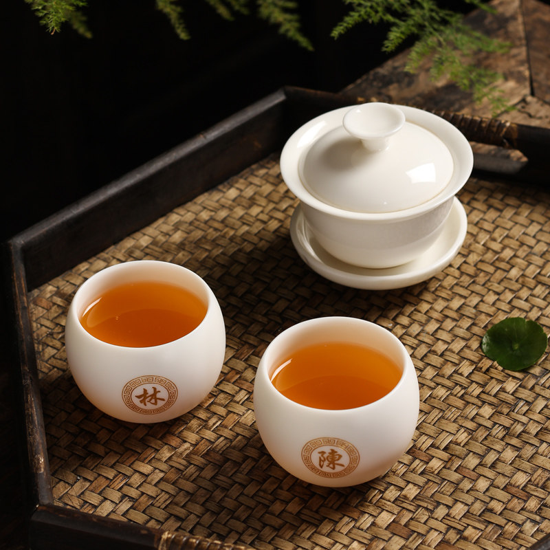 Defied White Porcelain Goat Fat Jade Porcelain Master Pint Cup Rohan Cup Private Custom Lettering for Home Ceramic Gongfu Tea Cup