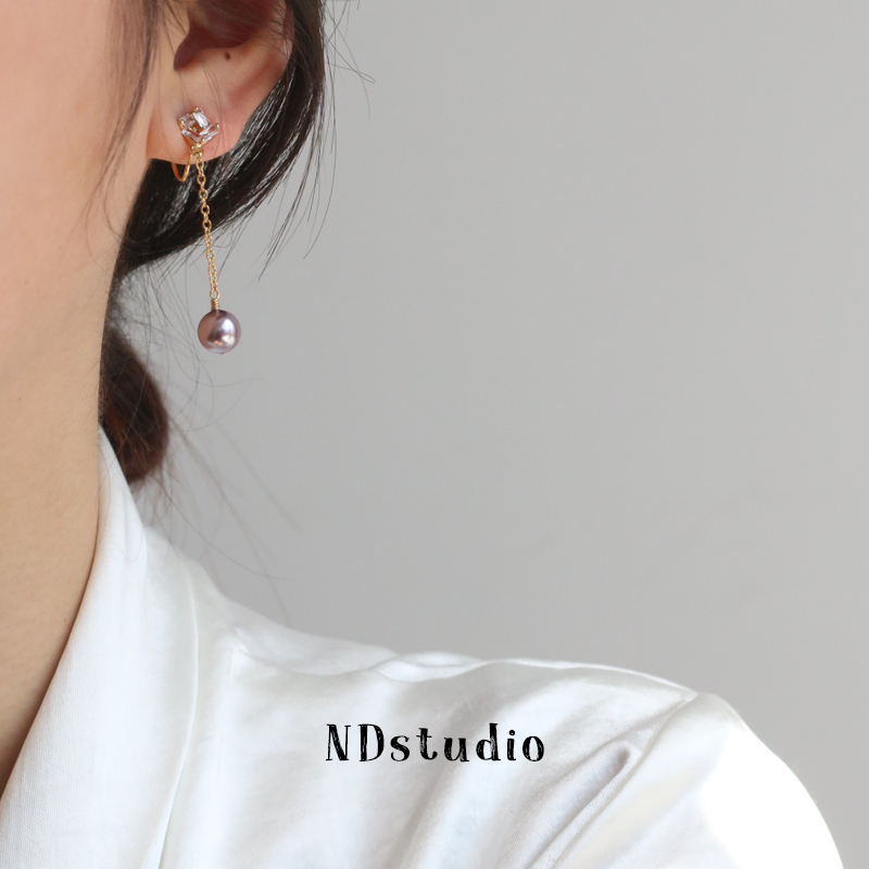 ND no pierced ears must enter elegant Purple Shi Jia Pearl High-grade sense retro French Port wind mosquito coil plate painless ear clip