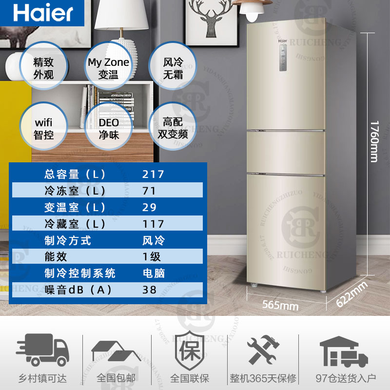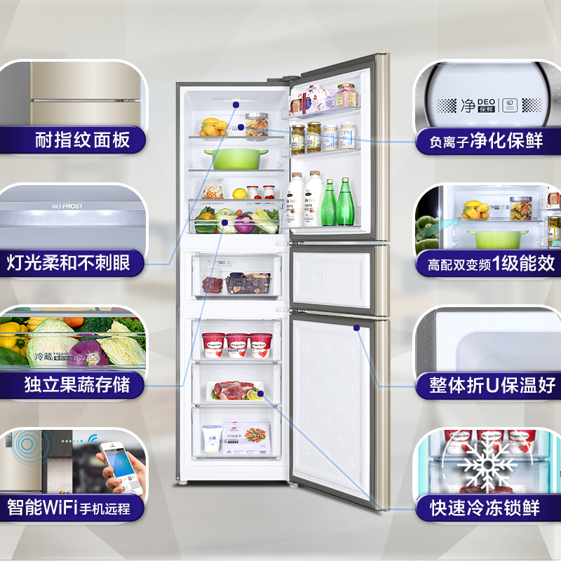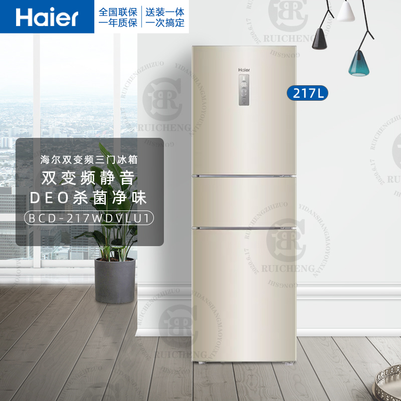 Haier Home 217 liters Three doors Double frequency conversion intelligent air-cooled frost-free refrigerator Official BCD-217WDVLU1