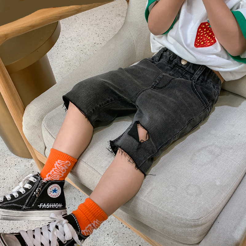 Boy Breaking Hole Jeans Children Korean Version 50% Pants Summer Thin pants CUHK Children's shorts