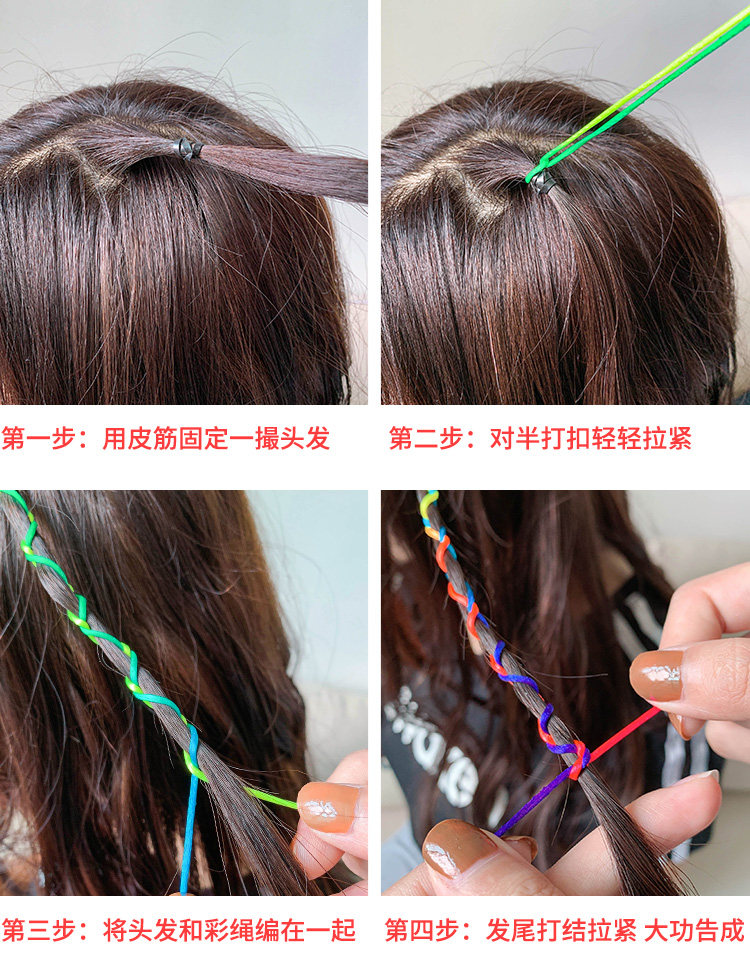 Net red female tie hair rope Color rope ribbon dirty braided braided hair lead rope Colorful braided hair rope Children's dirty braided