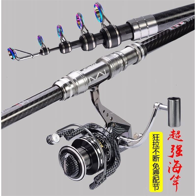 Sea pole metal wheel set fishing rod carbon sea pole ultra-light ultra-hard sea fishing rod throwing rod fishing gear