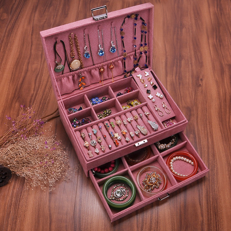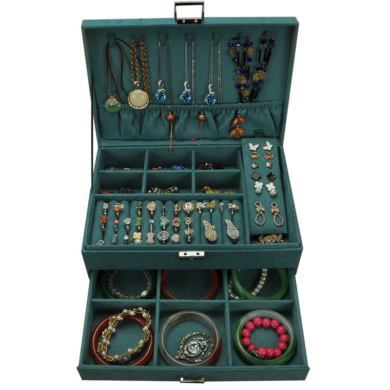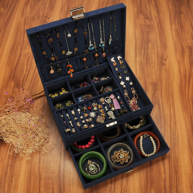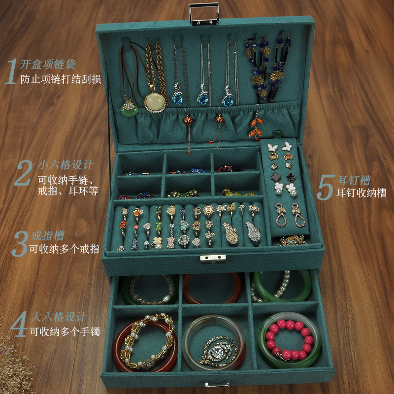 Jewelry box double layer high-grade lock Chinese retro ear pin bracelet jewelry jewelry necklace storage luxury large capacity