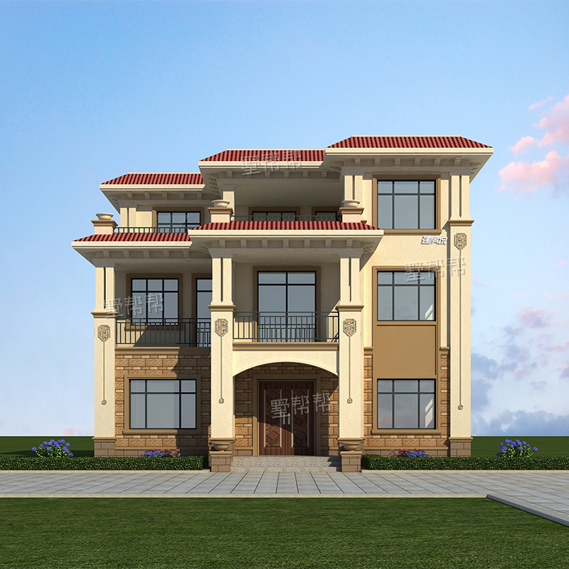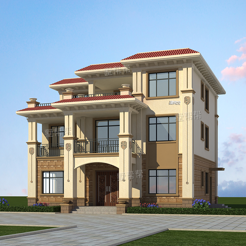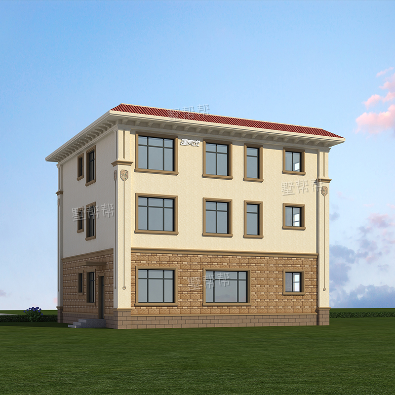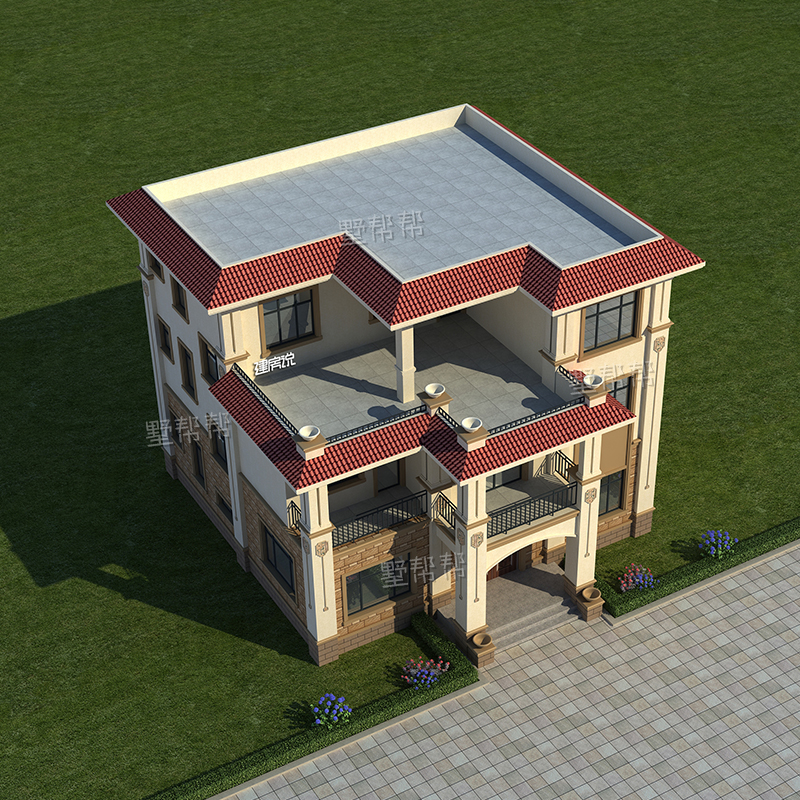 Two-storey and half-three villa design drawings atmospheric flat-roof European-style self-built house rural construction effect 91125