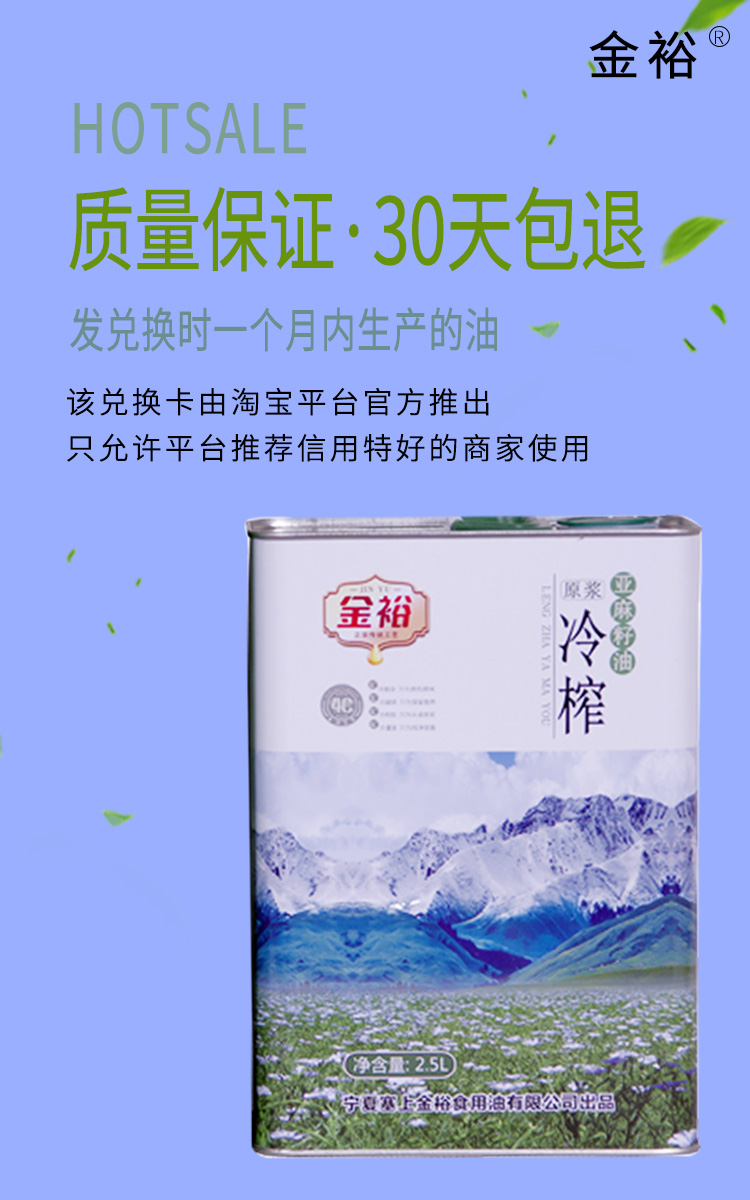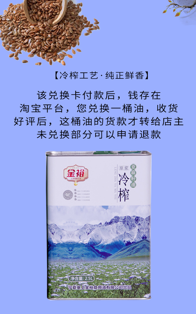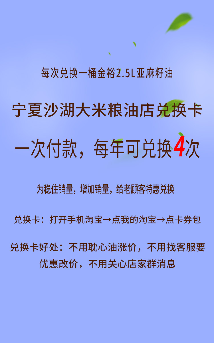Ningxia Sand Lake Rice Grain Oil Shop Old Customer Preferential Exchange Card to 4 times Linseed Oil Cold Squeeze 2 5L