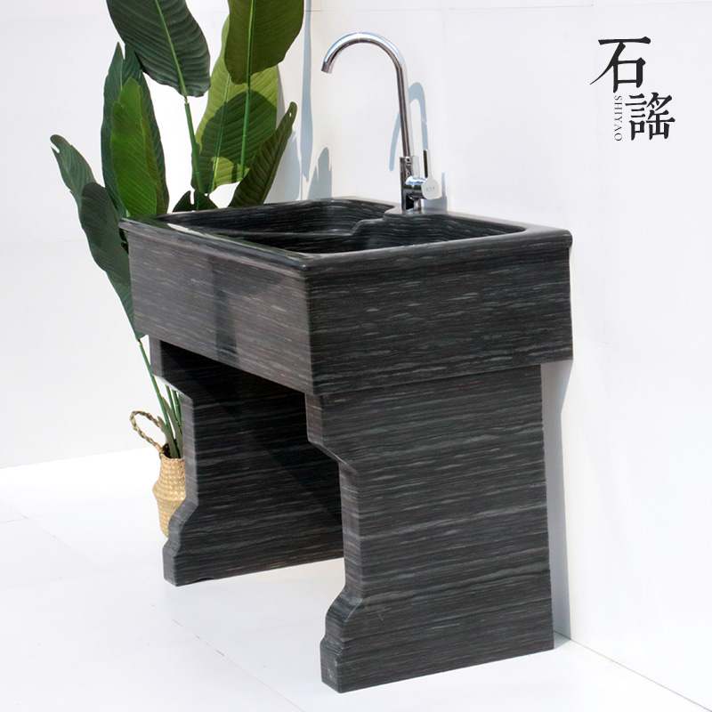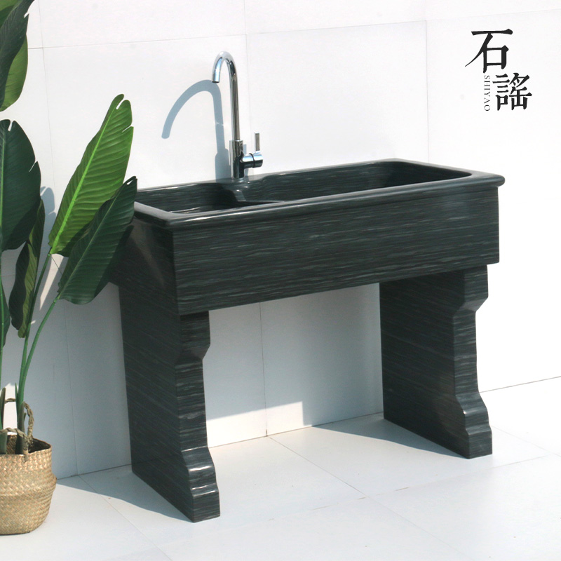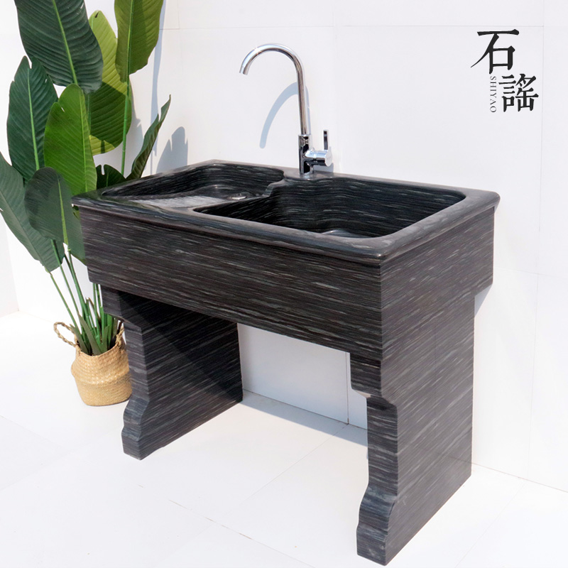 Household washing basin balcony washing pool with washboard marble outdoor black whole stone sink granite washing tank