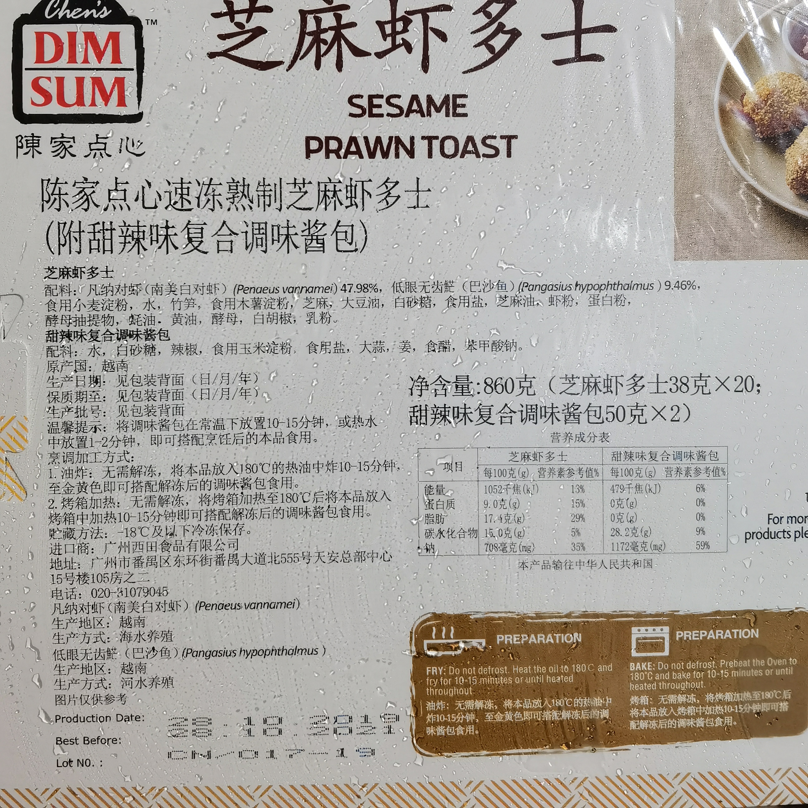 Shanghai Costco Chen's home refreshments frozen cooked sesame shrimp multi-serts 860g 20 only