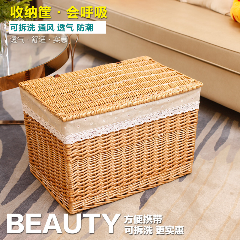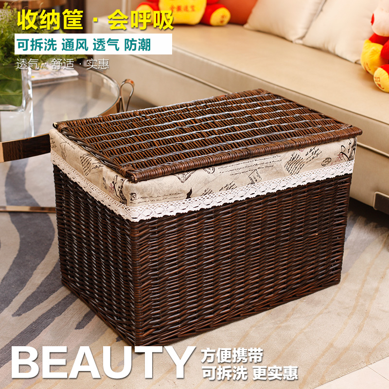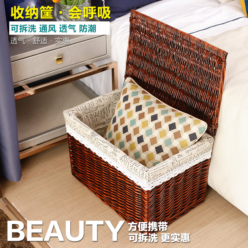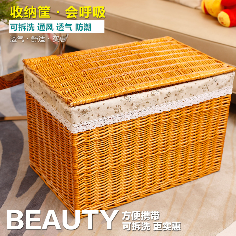 Rattan storage box home oversized quilt clothes clothing sundries storage basket woven with lid toy storage box