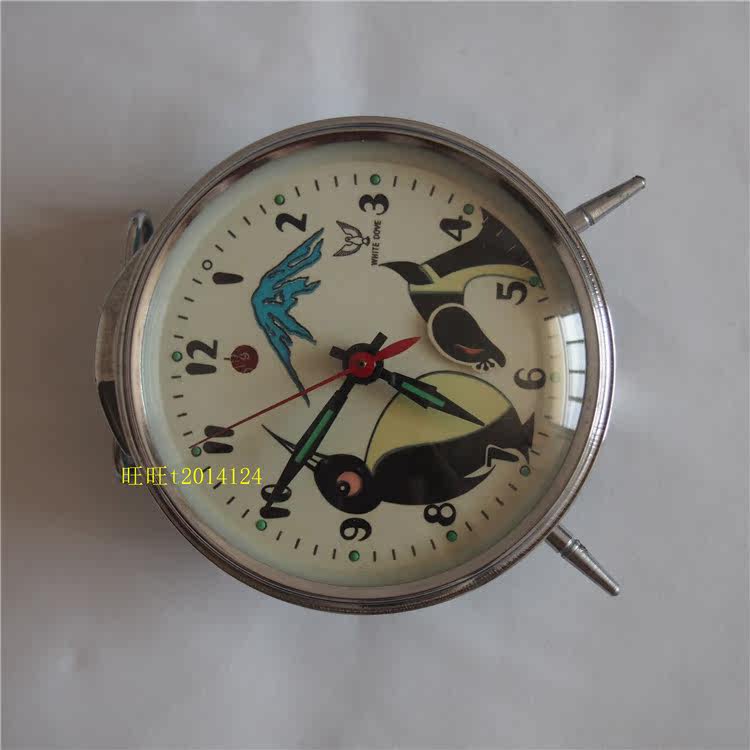 White Dove Card Penguin Monster Mechanical Alarm Clock Horseshoe Table Monster head will move