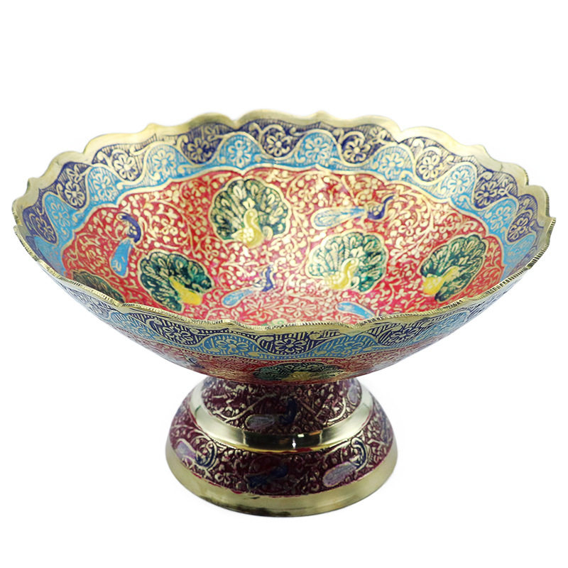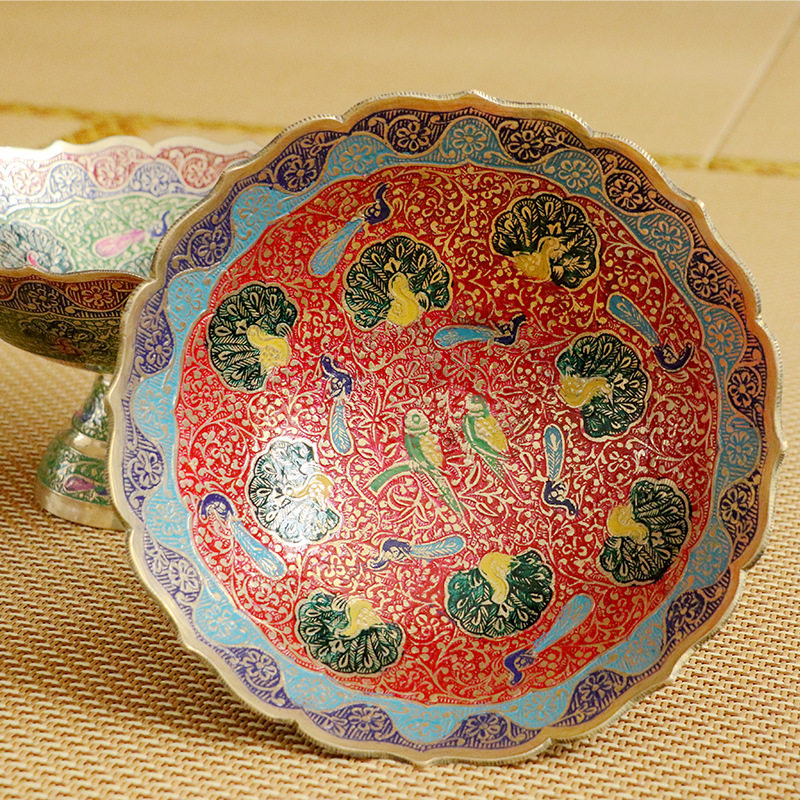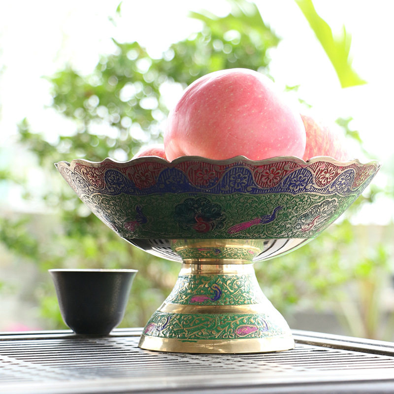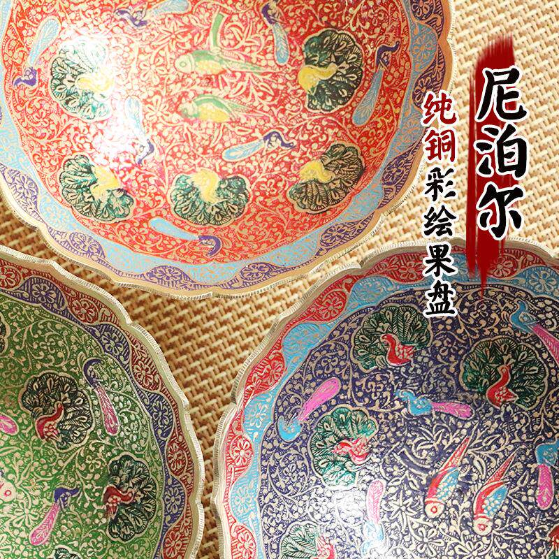 Nepalese colour painted pure copper fruit disc large number high foot retro dry fruit tray for fruit tray Home table decoration hem