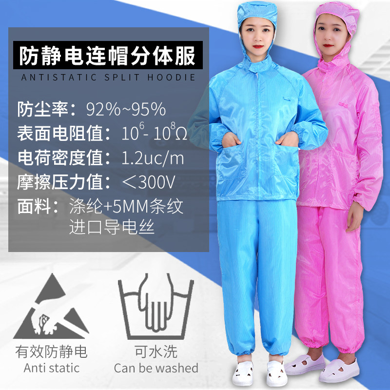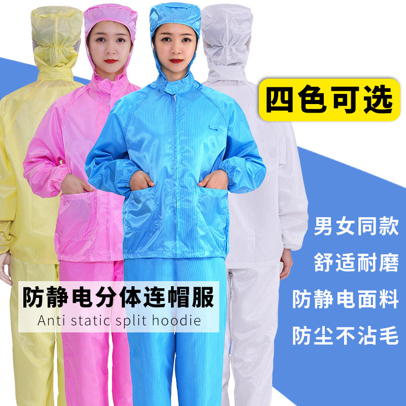 Anti-static two-piece connected hat work dresser paint dust-free food factory dust-proof clothing pharmaceutical two-piece clothing attached to hat
