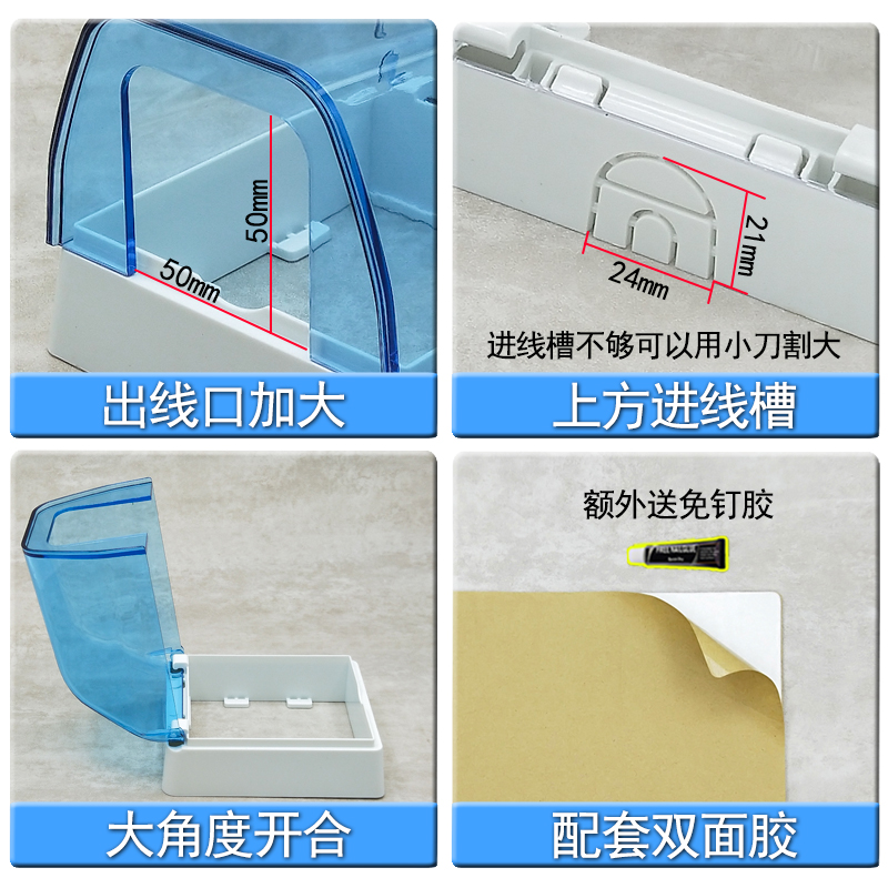 Surface-mounted switch socket waterproof box dressing room open-line water heater plus bright box black protective cover waterproof cover