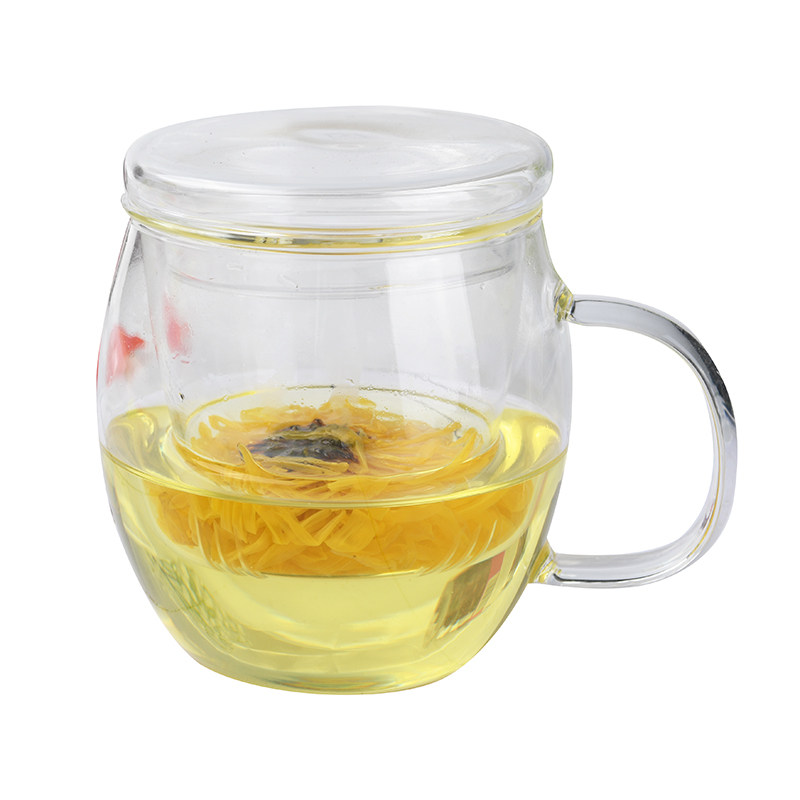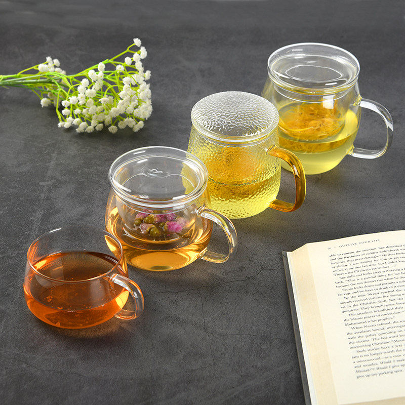 Tea cup glass three-piece cup filter household with lid and handle to make tea cup transparent flower tea cup for men and women