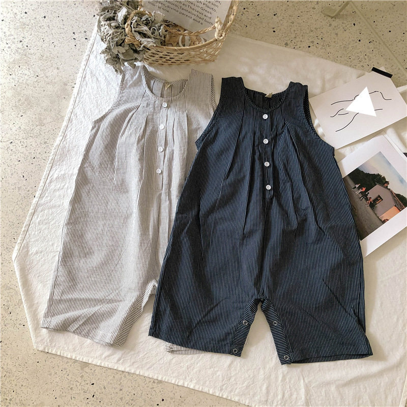 Thin cool and foreign style 2022 summer Korean children's sleeveless jumpsuit cotton boys and girls one-piece loose pants