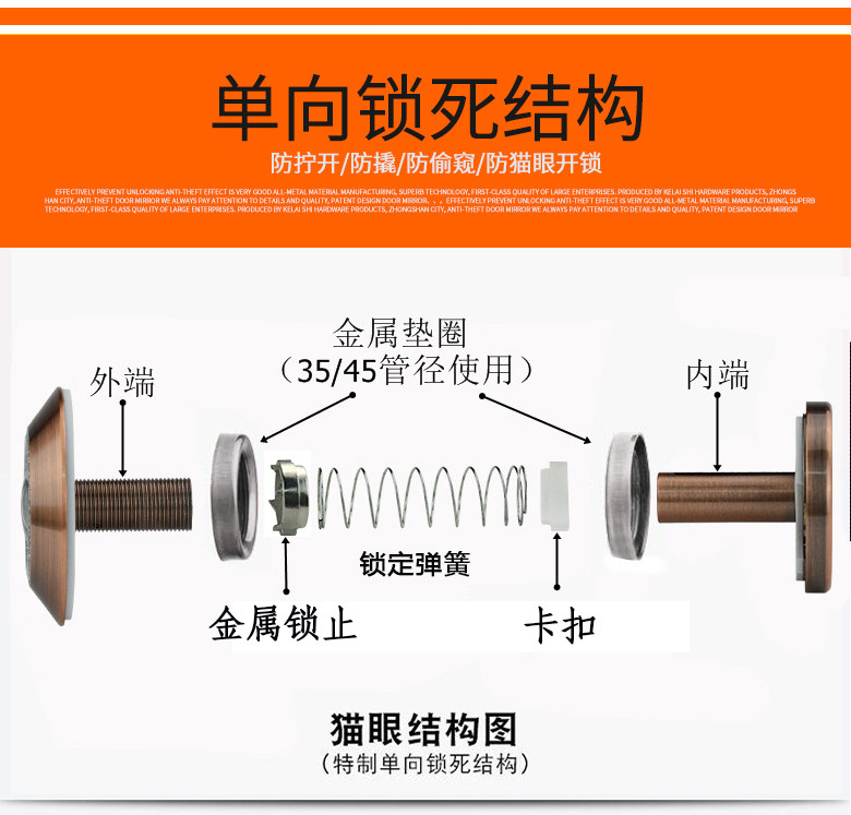 KLS anti-theft door mirror anti-pry anti-riot force cat's eye Anti-cat's eye door opening one-way locking structure MY-220