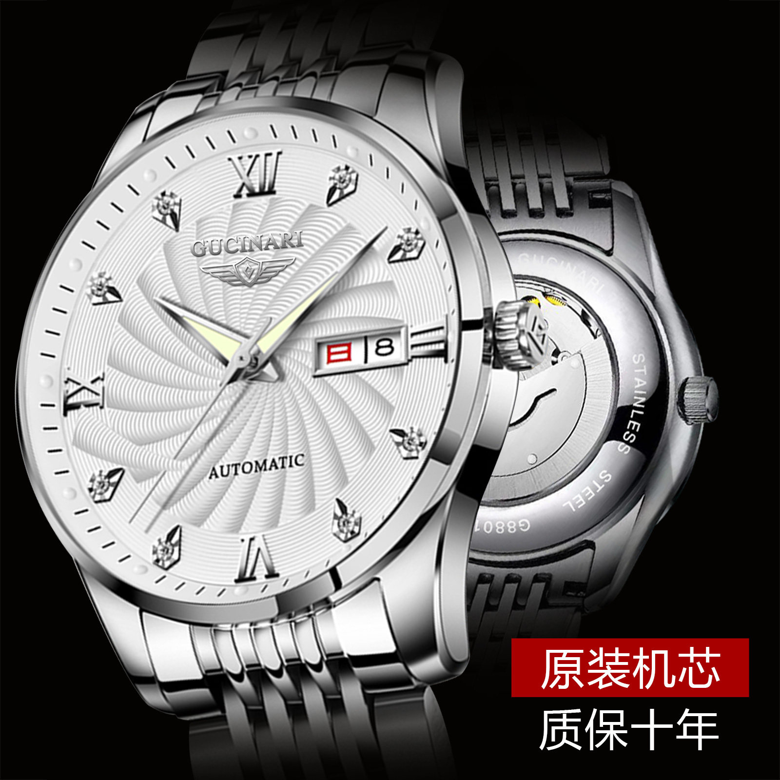 8801 double calendar gold and white noodles (collection send original leather strap tools) 8801 double calendar gold and black noodles(collection send original leather strap tools) 8801 double calendar natural white