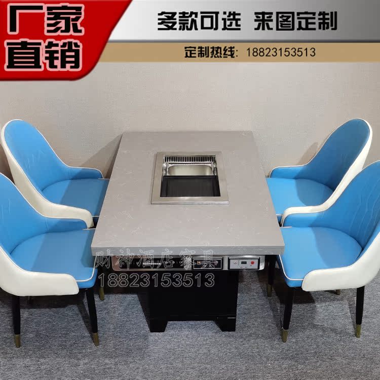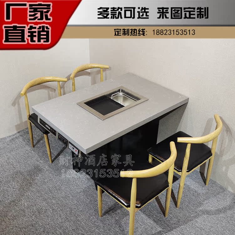 Smoke-free hot pot table Commercial purifier Self-service hot pot table Barbecue restaurant Marble table and chair combination